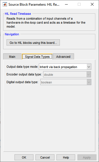Otherwise the data type of the encoder outputs can be specified explicitly using the Encoder output data type parameter and the data type of the digital outputs can be specified explicitly using the Digital output data type parameter.
