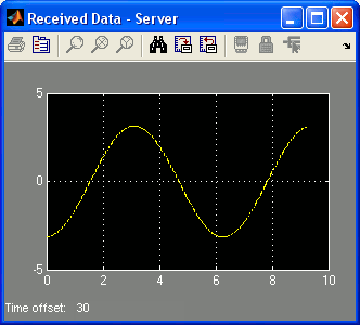 Now if you build and run the models, you will be able to view a sine wave on the "Received Data" scope of the server model and a sawtooth wave on the "Received Data" scope of the client model. These two scopes are illustrated below respectively.