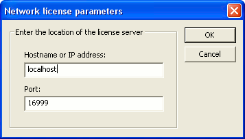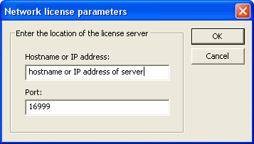 The Hostname or IP address parameter should be set to the IP address of the network license server. The Port parameter should stay as it is. Set these parameters and click on OK.