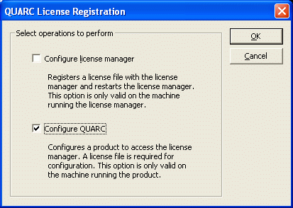 Make sure the Configure License Manager and Configure QUARC boxes are checked, and then click OK.