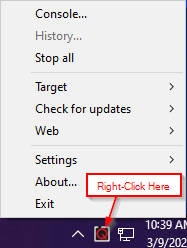 Opening a Console using the QUARC Tray Icon