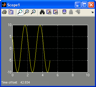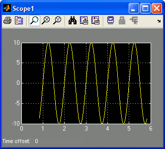 After running the model, notice that the "Scope2" block does not show anything since you have disabled it. The signal shown on "Scope1" should look similar to the following figure.
